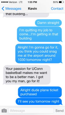 The phrase March Madness is typically used to describe the craziness that ensues when the 64 best teams in college basketball battle for their chance to be a part of history. After attending three Final Fours, this phrase can be extended to describe the scramble that is fan travel. Within minutes of our victory over Michigan State, I received a text from a close friend that he and his family had already booked their tickets to Dallas. Minutes later I had texts from five other friends expressing interest in Dallas. Tickets? Accommodations? Flight vs Driving? Duration of stay? By Monday night flights from Hartford to Dallas had jumped to $620, which after a weekend celebrating UCONN in Manhattan was more than I could pay. As a young alumnus, without the funds to travel as freely as I would like, it was time to get creative. This is what it takes to make the Final Four happen. I am not writing this to prove my fandom, but instead, bring to light the sacrifices young alumni/students make to support their alma mater in the hopes someone who can make this process easier in the future will make a change.