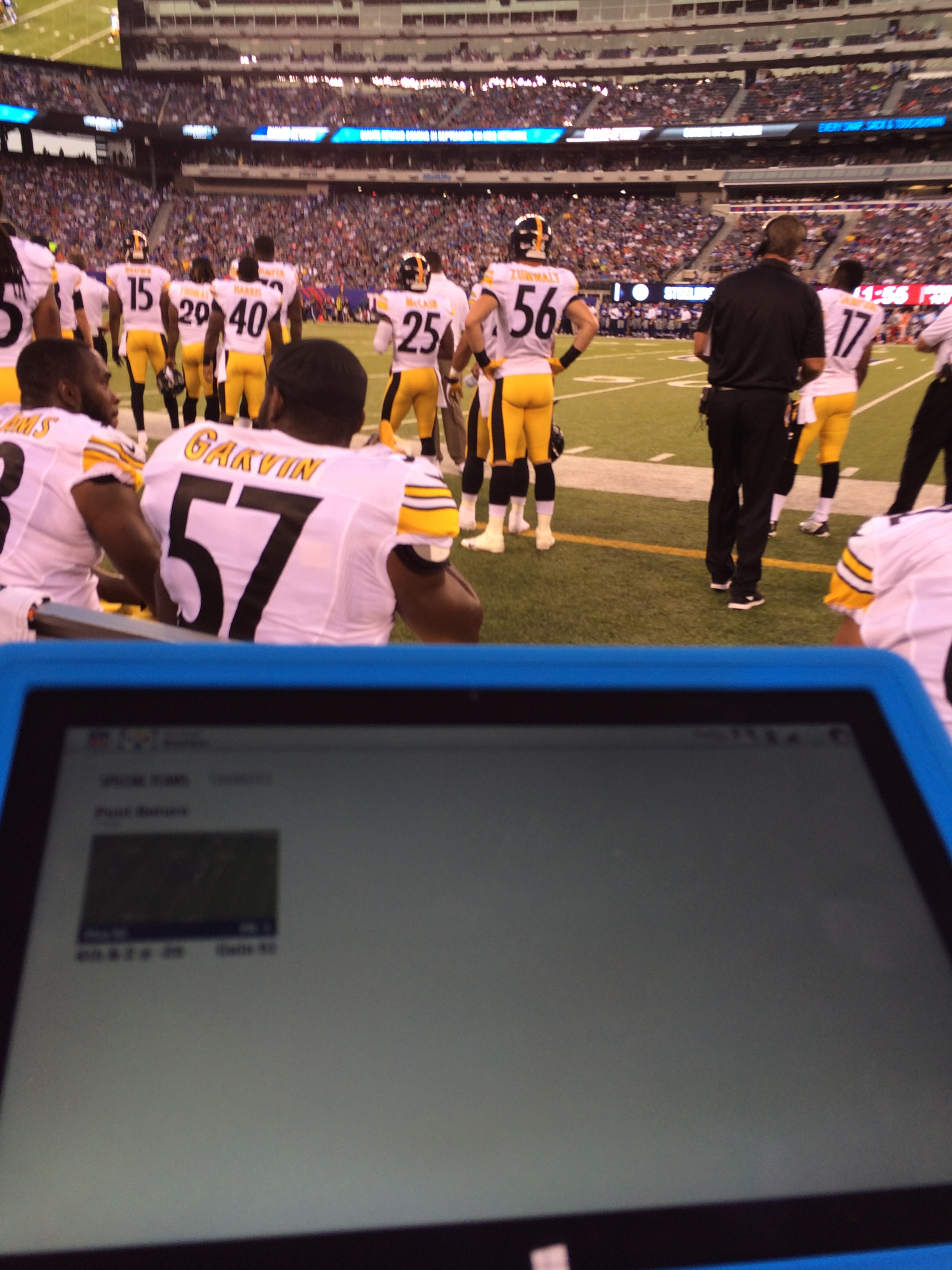 The Steeler’s coaching staff had a split preference for their first preseason game. Older coaches, such as Defensive Coordinator Dick Lebeau preferred paper to the tablet for the sake of familiarity. On the other hand, Ben Roethlisberger, clearly more in tune with today’s technology, had no problem using the tablet to show his WR’s what route they should have run. Special teams coach Danny Smith, who I worked with, had difficulty grasping the concept of the “+” button to enlarge photos. However, once he got a hold of the controls, preferred the tablet.