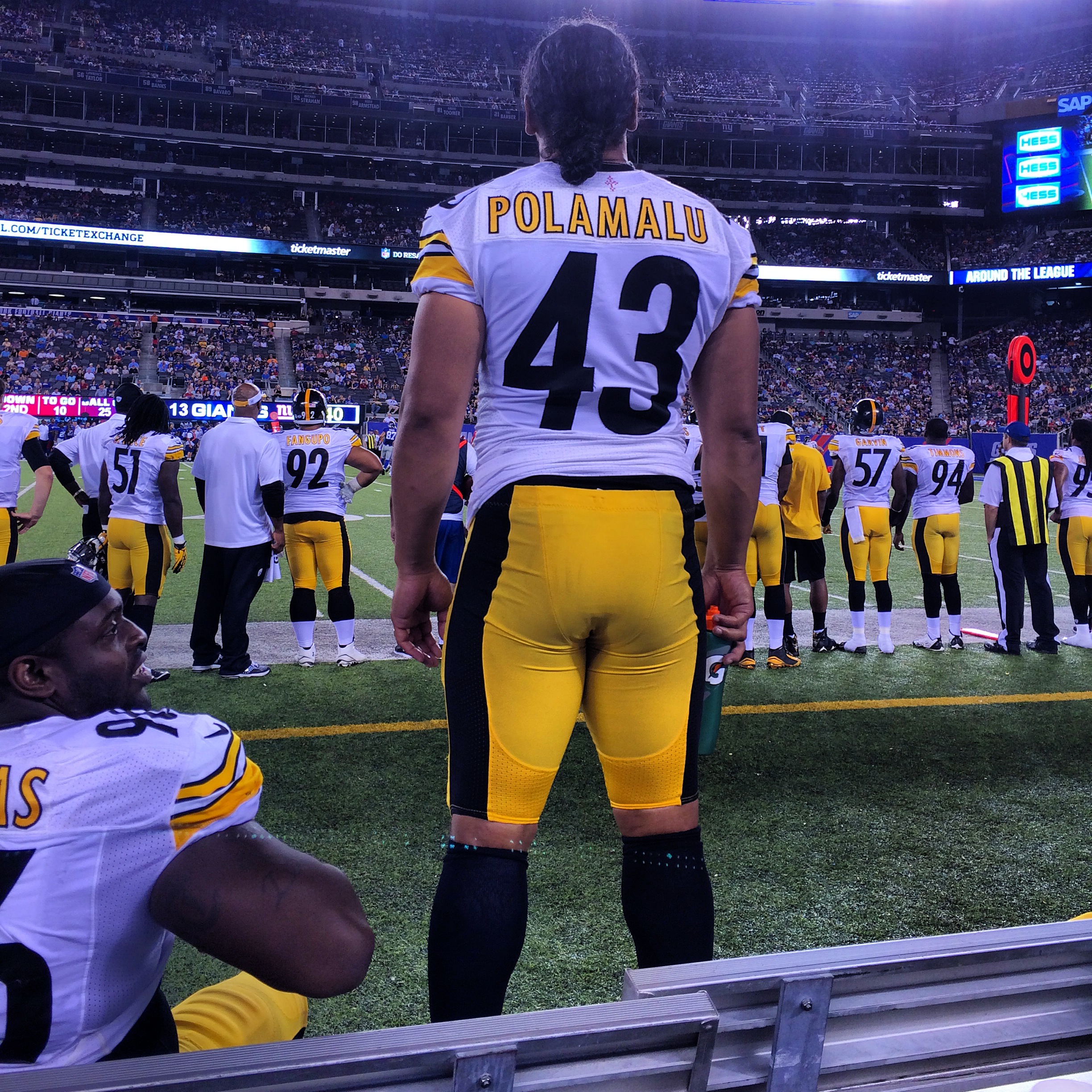 I had the opportunity to assist the Pittsburgh Steeler’s video crew (thanks Kory) in their August 9th meeting with the New York Giants, specifically with the distribution of Still Shot images. “Still Shot” refers to two images, one pre-snap and one post-snap, of in-game formations used by coaches/players for on-the-fly analysis. In the past this process involved the printing of images and manual assembly into a binder to be rushed to coaches/players- think the binder QB’s are typically shown huddled over on the bench (Roethlisberger below, left). This season, as part of a deal between the NFL and Microsoft, the paper process will begin to be replaced by Surface Pro 2 tablets (as seen in my hand below).
