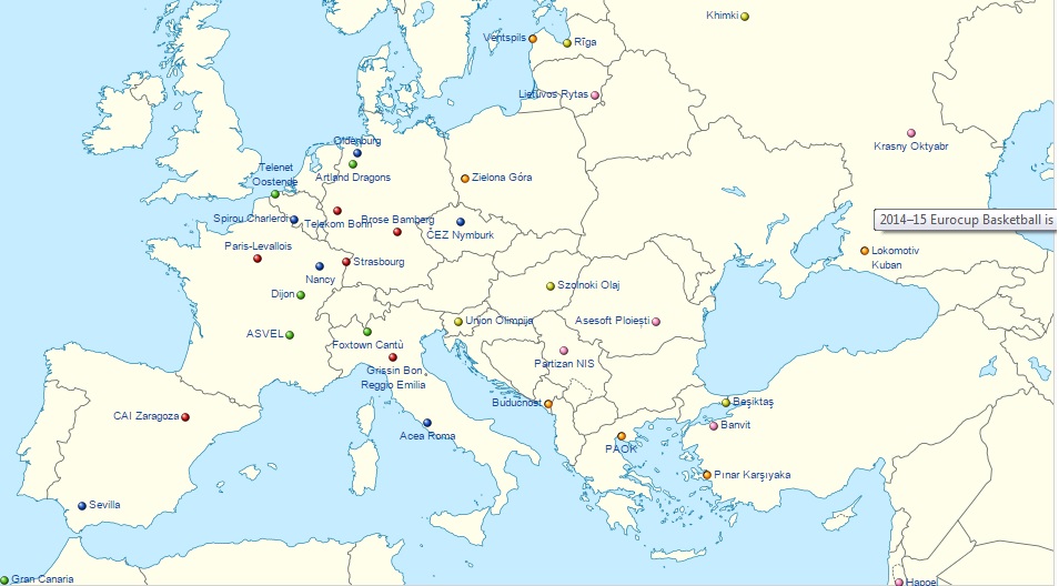 To gauge the scope of the EuroCup, here is a map of all participating clubs (minus late additions):